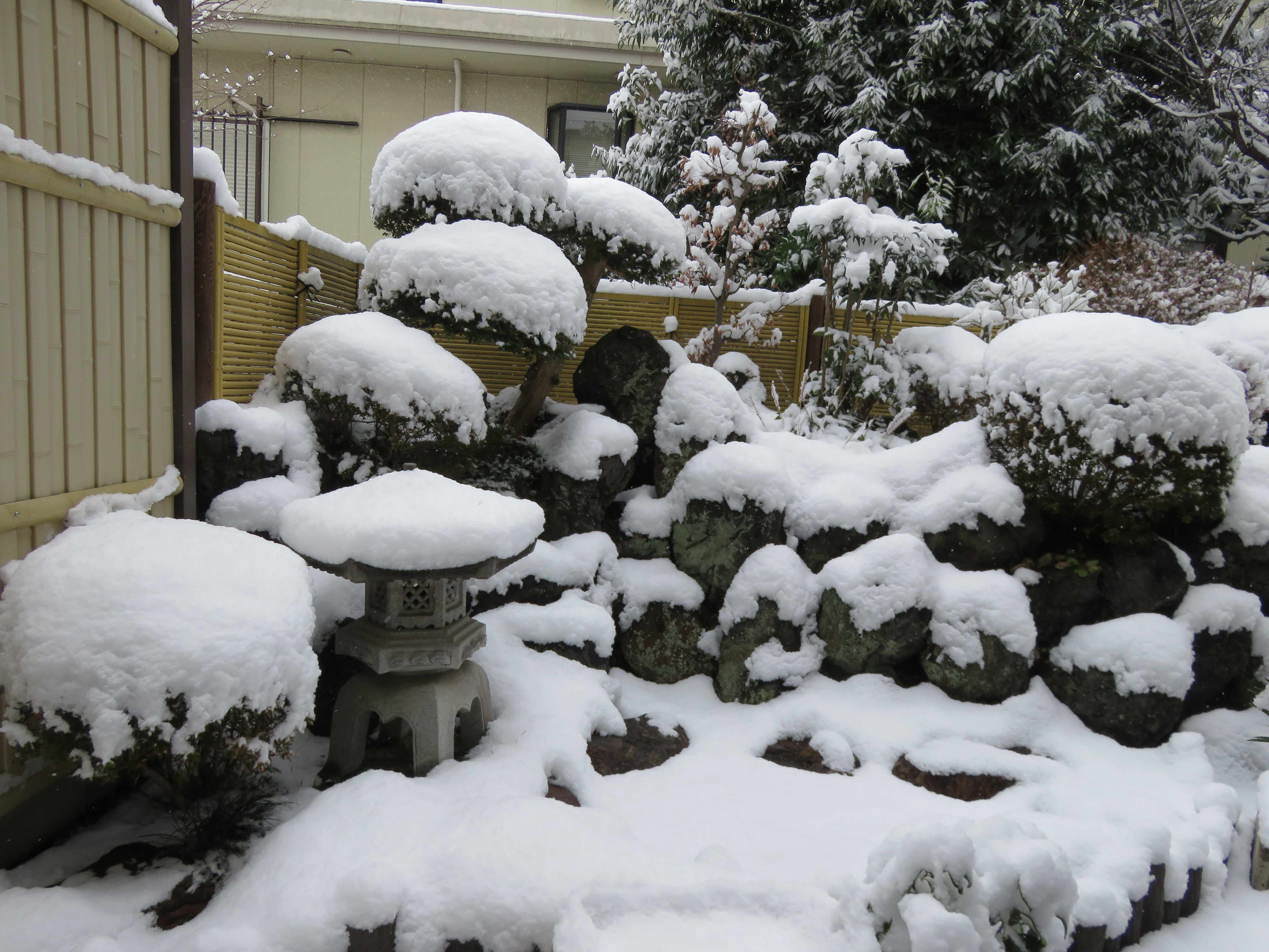 早朝6:00頃から雪が降り始める。新聞を取りに出て見たら、之は