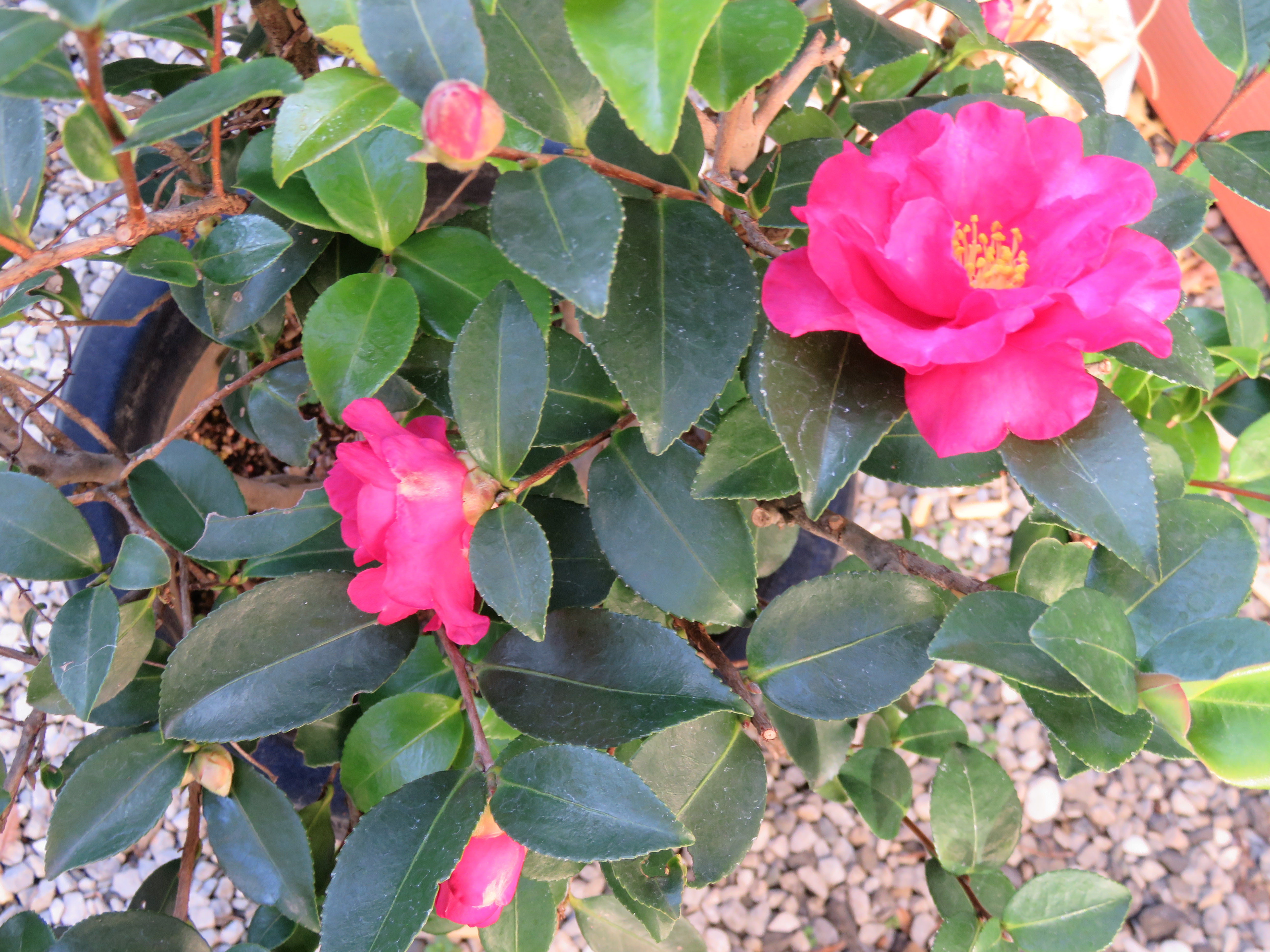 寒さが定着したようです。この寒さの中、鉢植えの山茶花が咲きました。