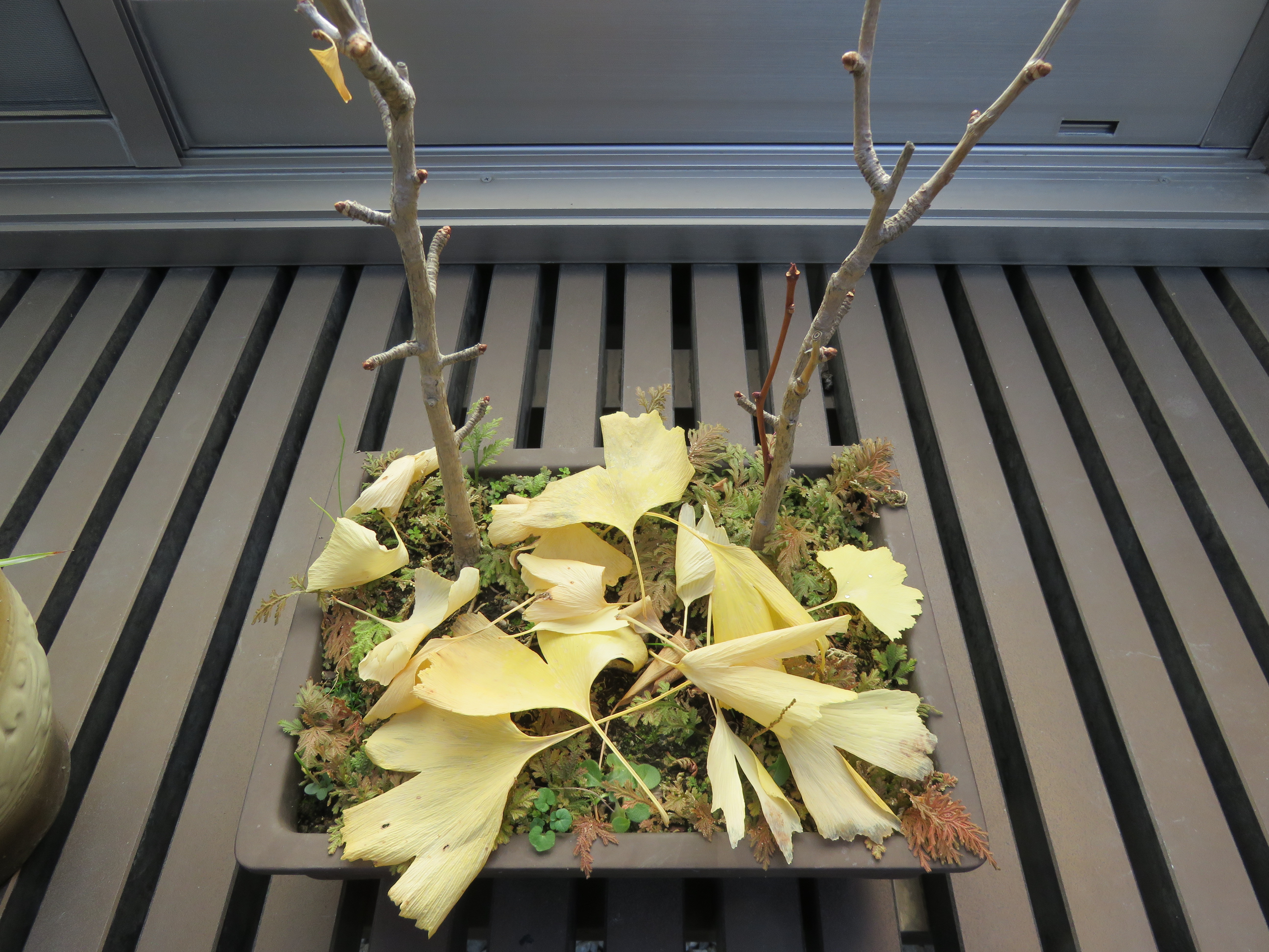 また、之も鉢植えの銀杏の葉、綺麗に散り尽くしました。木は細いのに