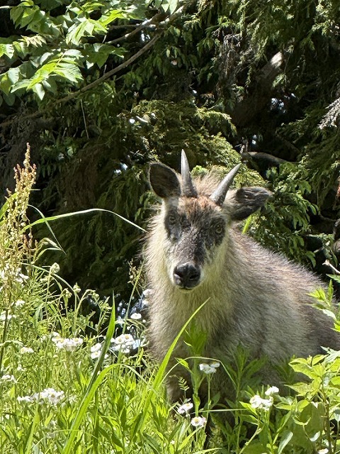 散歩中にカモシカと出くわしたらびっくりするだろうね。写真を撮る余裕があるのはたいしたものだ。