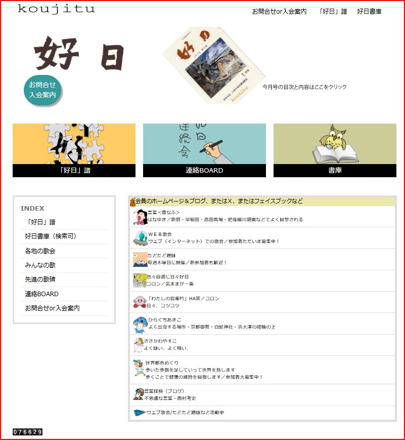 そして表紙のトップに好日の今月号へ入れるようにしました。