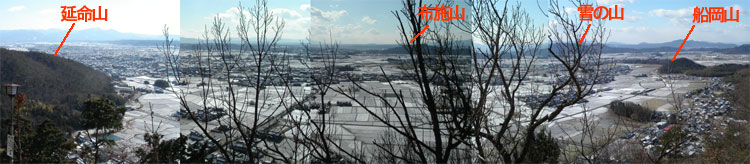 (下俯瞰図、太郎坊宮のある赤神山より蒲生野を望む。クリック拡大)