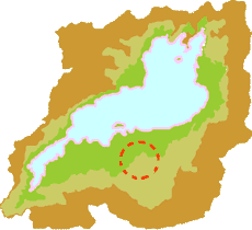 蒲生野のある辺りは、湖東平野のなかでももっとも平野部分が広いことがわかります。