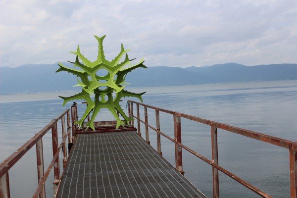島内には大きな漁業倉庫がある。こんな小さな島にこんな大きな倉庫が要るのか?と疑問に思うが、琵琶湖の漁業は、攻撃型ではなく「待ち」の漁業で、網などを設置しておいて魚が入ってくれるのを待つ漁業のために、それぞれの大きさの魚に合わせた漁網が要るために、こんなに大きな漁業倉庫が必要になるのだという。